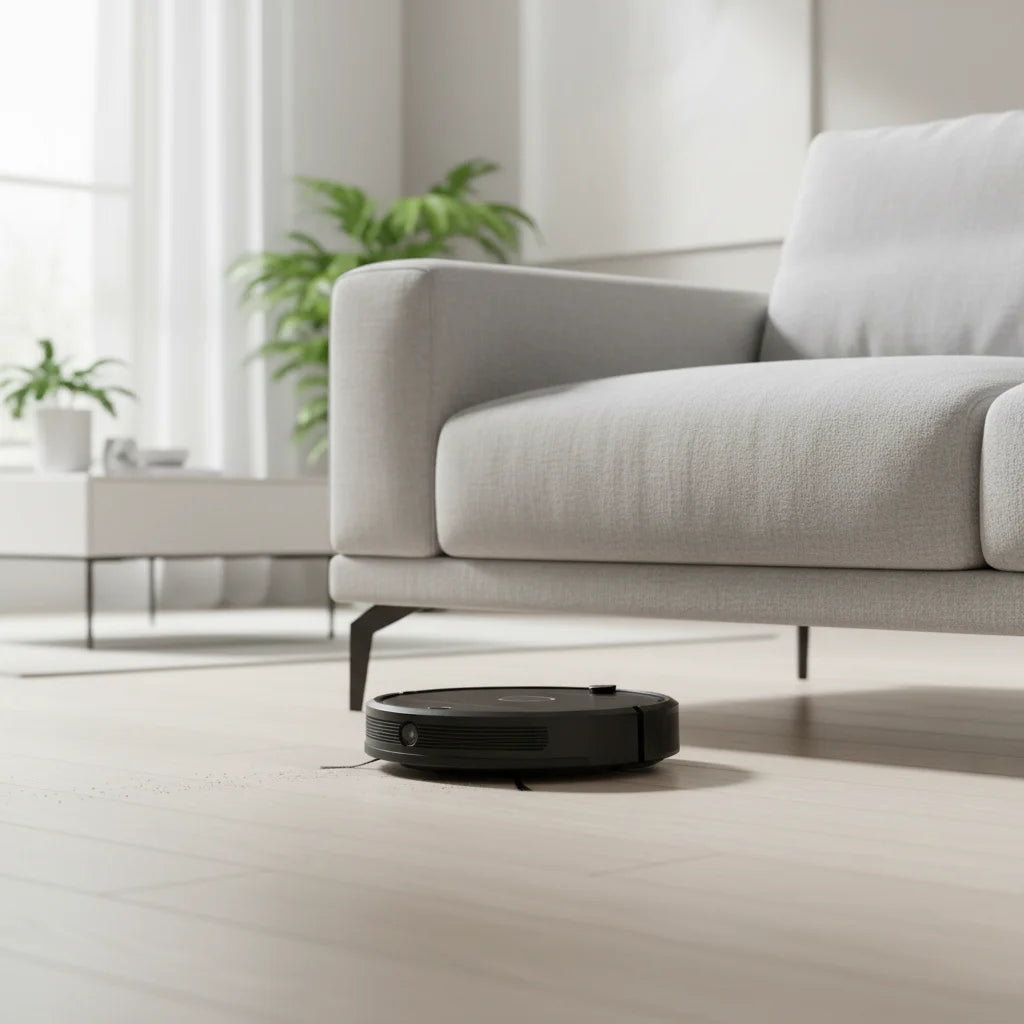 Don't let its size fool you. This sleek, modern robot effortlessly glides under furniture and into tight spots, ensuring every corner of your home sparkles. It's smart cleaning without the bulk.